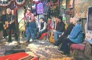 Marty said, "Yeah." Leroy said, "Thank ya." Marty continued, "Turned ya down cold, didn't she, boy. That Lula Walls." Eddie said, "Thank you, Leroy Troy. 'Lula Walls'. Hymn time this week. Marty Stuart's gonna join our special guest Dale Jett and Hello Stranger with an old song that originated on record with the original Carter Family. Here's 'The Sea of Galilee'."