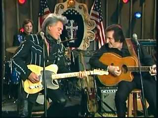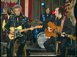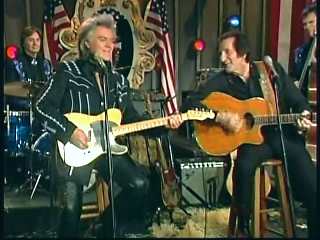 Marty said, "All right, Contance. Hey, Mr. Kershaw. Please come around. Mr. Doug Kershaw, ladies and gentlemen." Marty and Doug performed "Blue Town."