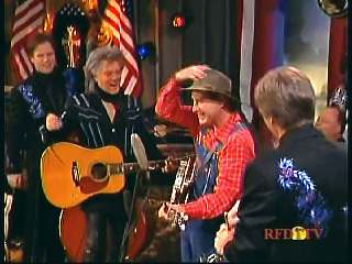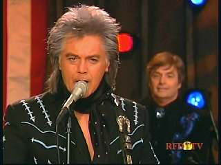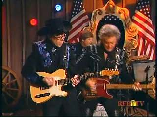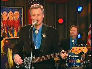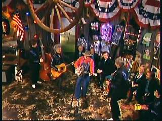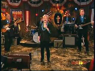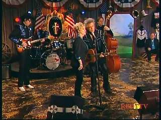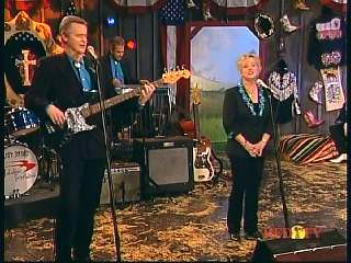 Eddie Stubbs said, "The Rolls Royce of country singers just pulled up and got out with that one right there. That's Connie Smith and that great band The Sundowners." Eddie promoted the two DVD set of highlights from the first season of The Marty Stuart Show. After a commercial break, Marty and Connie were onstage and Marty said, "Ahh welcome back to The Marty Stuart Show and how 'bout a hand for Connie Smith and all The Sundowners. And, what about that hay bale selection over there. Ah yes. Superlative hay bales. And Superlatives, we have to make mention, we're honored to have the U.S. "Hair Force" with us today. Our advisory committee. How 'bout a hand for the "Hair Force. Hey Connie. I meant what I said when I introduced The Sundowners. You and The Sundowners are absolutely the greatest country act out there right now. I love this band." Connie said, "Thanks." Marty continued, "Well, since they're here, why don't you introduce the ladies and gentlemen." Connie said, "Me .....no. This is my guitar player Rick Wright over there." Marty said, "That's right. That's Rick." Connie continued, "Playin' drums is Ric MClure." Marty said, "That's him." Connie said, "And I think you've heard of this guy. Gary Carter, my steel guitar player." Marty said, "Everybody knows Gary Carter. And for twenty years, my band leader and my bass player, backup singer, whatever, bus driver, whatever you need. Mr. Rod Hamm." Marty said, "Yes sir. I got a comment about that." Connie said, "Okay." Marty continued, "Last time The Sundowners came by, Rod got the short end of the stick. He didn't get to sing a song so since he's here, we really need to work him hard today." Connie said, "I think he should start workin' after twenty years." Marty said, "Well, I tell ya what. I've got a request sang. My favorite song you do is a Skeets McDonald that we all learned off the Eddie Stubbs show. How 'bout a hand for Rod Hamm and 'Same Old Town'. You gonna sing backup?" Connie said, "Can I? .Can I be your girl singer?" Rod said, "This is one of your favorites and I hope it's one of mine."