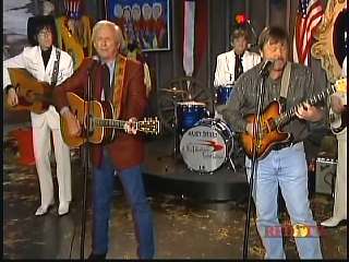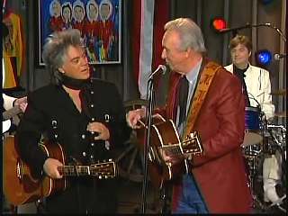 Marty said to Mel Tillis, "Did you enjoy Connie Smith?" Mel said, "I love her voice so much. You know we worked with her in Branson, Missouri for about 30 days." Marty said, "I know it." Mel continued "And my band, boy, just loved her to death. I mean, she's such a pro. We love her." Marty said, "And at our house, we love you, too. Thank you very much for coming to see us." Mel said, "Thank you, Marty." Marty said, "My favorite Mel Tillis song, well, not my favorite coz they're all my favorite, But my favorite this minute is 'Detroit City'. Would you sing it for us? Melvin, how about 'Detroit City'. Cous." Marty and Mel sang "Detroit City." Great steel guitar playing on this song by Gary Carter.