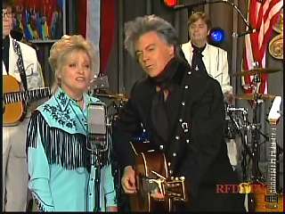 Eddie Stubbs said, "All right great job there, Leroy Troy. One of the old Bailes Brothers, 'The Drunkard's Grave'. That's a sermon in itself right there. You know, speaking of sermons, we do hope that Sunday morning that you and yours will attend the church of your choice. And with that in mind, we'd like to declare hymn time on the program this week. We've got Marty Stuart and Connie Smith here gonna team up here on 'He Turned The Water Into Wine'."