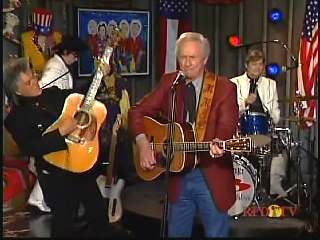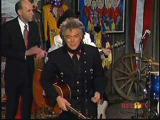 Mel was clapping because he got through the talking part of the song without studdering. He said, "I did it, I did it." Marty said, "Detroit City. Thank you, Melvin." Mel said, "I can't believe I did it. That's the first time." Eddie said, "Ah goodness. That is fine right there. Detroit City. Mel Tillis and Marty Stuart. Both of 'em playing those great looking Martin D-45 guitars, too." Eddie promoted Connie Smith's Born To Sing boxed set. After a commercial break, Marty said, "Welcome back to The Marty Stuart Show. Hey thank you once again for writing me at the Grand Ole Opry, sending us emails. If you're ever in Nashville and you've never been to the Grand Ole Opry, you owe it to yourself to come see it. You'll see Eddie Stubbs in person there just about every time. It's historic. Speaking of historic, Melvin. It's time. It's time for the Sultan of Goodlettsville, the most popular man in country music. Ladies and gentlemen, here he is the ole Tennessee Slicker, Leroy Troy. Where are you Leroy. Hey Leroy. You know all the Statesiders, Melvin, Good ole Jimmy will play with us. Ole Hank Singer. Pick along with us, Jim." Leroy Troy sang "The Drunkard's Grave."