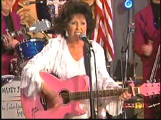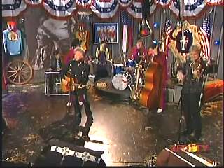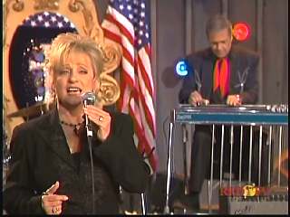 After a commercial break, Eddie Stubbs promoted The Marty Stuart Collection of five CDs, Live at the Ryman, Badlands, Compadres: An Anthology of Duets, Cool Country Favorites and Souls' Chapel. He introduced Marty. Marty said to Wanda Jackson, "Hey, thank you for coming to see us and you know what, congratulations on your induction to the Rock and Roll Hall of Fame." Wanda said, "How 'bout that. Thank you very much. Thanks" Marty continued, "Why don't you do one of those big ole snazzy hits that got ya started to get you to the Rock and Roll Hall of Fame." Wanda said, "Okay." Marty continued, "All right." Wanda said, "Yeah, just the key of G to start." Marty said, "Little chord." Wanda let out a note and said, "Somethin' like that?" Marty said, "That's the one." Wanda rocked the house on, "Let's Have A Party."