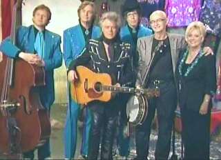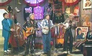 Marty: "You heard about Carl Jackson gettin' on that trail, didn't ya." Leroy: "Yes I did." Marty: "Isn't that good news?" Leroy: "Congratulations Carl." Carl: "Thank you. Thank you there, buddy." Leroy: "I tell ya what. When I was about twelve years old, Carl's record, banjo record, was one of my first besides Lester Flat and Earl Scruggs and the McCormick Brothers." Carl: "Is that right." Leroy: "Sure 'nuff man. Good company, good picker." Marty: "Well, put him to work." Leroy: "Well, I am, but you're just gonna play for support. Here's ya a love song. I call it my love song coz I love to sing it. It's called 'I Wish I Was Single Again'."
