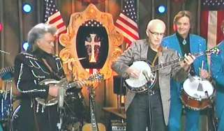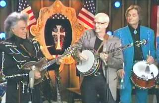 Kenny said, "Oh yeah, it won't do." Marty said, "Good job, Cous. Gather round, Superlatives. How 'bout a hand for the Louisville, Mississippi flash, ladies and gentlemen. My friend, Mr. Carl Jackson and his hot banjo. Come here CJ. Hello friend. All right. Let's send this one down to Lethal Jackson whataya say. All right." They performed "Daybreak In Dixie."