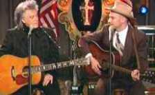 Eddie said, "When Hank III came out on the set wearing his grandfather's suit...." Connie said, "That was amazing because he looked so much like his granddaddy." Eddie said, "They're both about the same stature and same height." Connie said, "And I believe he has a lot of the heart in his granddaddy." Eddie said, "And when they performed 'Picture From Life's Other Side', we knew that we were witnessing truly a very special moment." Marty and Hank III performed the song.