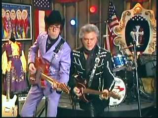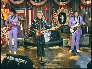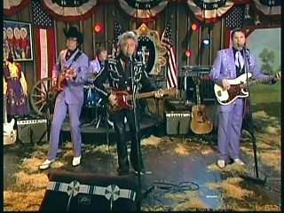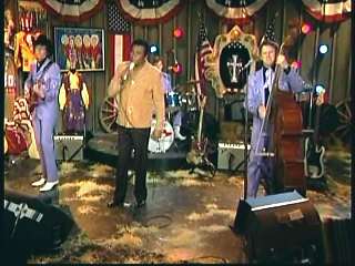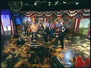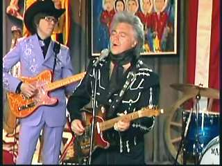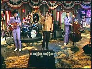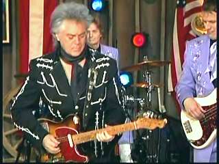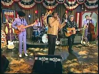 Eddie Stubbs said, "Powerful lyric and a powerful delivery there from Marty Stuart. Thank you, sir." Eddie promoted Marty's book of photographs, Country Music: The Masters. After a commercial break, Marty said, "Welcome back. So glad you could join us. Now, I'm always proud to tell ya this show is sponsored by the good people in the great state of Mississippi. Mississippi is called the Birthplace of America's Music. And people come from all over the world to be part of the atmosphere in which the Magnolia State's music has been created. If you've never been, I'd like to invite you to come to Mississippi and share in the feeling of our music. Two music trails run throughout the state and will serve as your guide. The Blues Trail and the Country Music Trail with stop number one being the Father of Country Music, Jimmie Rodgers' marker in Meridian, Mississippi. Jimmie's marker is just one of well over 100 stops along the way. And we're nothin' close to bein' finished. Now stay tuned because a little later in this program's broadcast, I have some good news to tell ya concerning the Country Music Trail. Meanwhile, how 'bout a hand for our friends in Meridian, Mississippi, the town with the most Blues and Country Music Trail markers. Apostle?" Paul said, "Yes, sir." Marty continued, "Mr. Pride, speakin' of trails, here's a trail blazer from way back. The ole Sultan of Goodlettsville, the Tennessee Slicker, the most popular man in country music. How 'bout a hand for Leroy Troy, everybody. You know Connie, Apostle, Hank, Charley Pride."