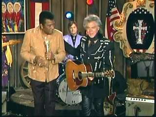 Marty said, "Oh yeah. That's the way that's done right there. Mr. Pride." Charley said, "Thank you. Thank you." Marty said, "Charley Pride." After a commercial break, Marty said, "Welcome back, everybody. Oh look over here. Mr. Charley Pride and Mr. Hank Singer. Superlatives, we're talkin' big time country music sittin' over there. My hero, Mr. Pride. Speakin' of my heroes, here comes another one. I love her. Comin' through the red door, Charley Pride. Here she is. Connie Smith. Come here, Constance June. Sing it pretty, baby." Connie sang "All That's Left Of You And Me."