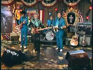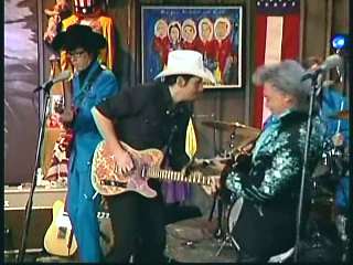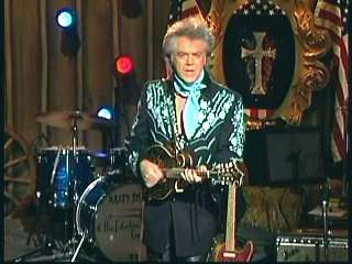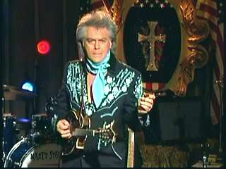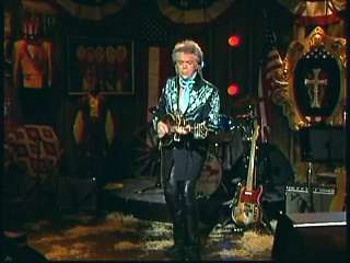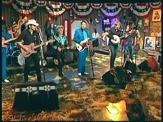 Eddie promoted Marty's book of photographs, Country Music: The Masters. After a commercial break, Marty, Paul and Harry were on stage. Marty said, "Welcome back, ladies and gentlemen. Whataya think, Brad. Well all right. Superlatives?" Paul and Harry answered, "Yes." Marty continued, "Always good news to tell ya that The Marty Stuart Show is sponsored by the good people of the great state of Mississippi. Now, Handsome Harry." Harry said, "Yes." Marty went on, "195 miles due north of the romantic river town of Natchez, Mississippi, is a town that's near and dear to my heart. Hometown, Philadelphia, Mississippi. And just outside of Philadelphia is the Pearl River Resort. Visitors come from all over to visit the Silver Star Casino, eat good food, play golf at the Dancing Rabbit Golf Course, and attend concerts like Brad Paisley at the Golden Moon Event Center. Pearl River Resort is part of the Choctaw Reservation surrounded by majestic pine trees, azaleas, with lots of friendly people that'll make ya feel welcome. You can relax and do nothin' at Pearl River or hit the bright lights and stay up for a week. It's your call. But just in case you do stay up for a week and the slot machine accidentally takes all your money, go see my friend Jackie Chan over at Philadelphia Gun and Pawn. He'll work out somethin' for ya to getcha home, I'm sure. He's a good man. Give him a hand in Philadelphia. That's right. Speakin' of good fellas, here he comes, Brad. The Sultan of Goodlettsville, the ole Tennessee Slicker, how 'bout a hand for Leroy Troy. Come here, Leroy. Look here. Superlatives, Connie, Brad and the boys. Well."