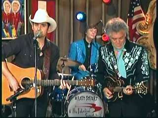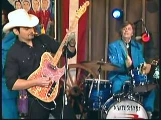 Marty said, "Mr. Brad Paisley, ladies and gentlemen. Great job. Good song, Brad man. Cous. On behalf of Brad Paisley, Kendal, Justin, Connie. Lorrie, Leroy, The Superlatives, Eddie, and Gary, I'm Marty Stuart sayin' thank you for joinin' us. We'll see ya again .... hi baby ... next week right here on The Marty Stuart Show."