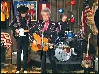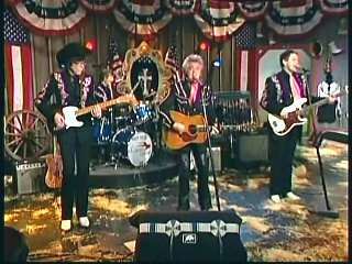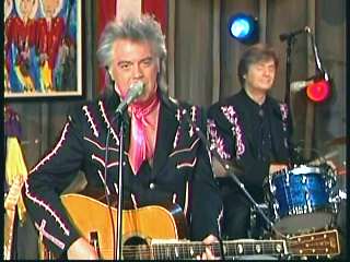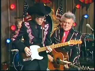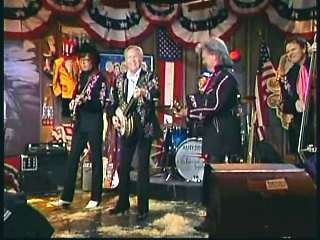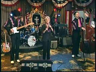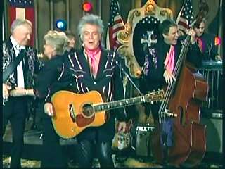 Eddie said, "Wonderful sounds right there. 'Holding On To Nothing'. Thank you, fellas." Eddie promoted Marty's book of photographs, Country Music: The Masters. After a commercial break, Marty said, "There you are. Thought you'd never come back. I consider it an honor each and every week to tell ya that The Marty Stuart Show is sponsored by my home state. I'm speakin' of dear old Mississippi, the birthplace of America's music. Now I wanna tell ya about an old friend that was located on the edge of Meridian, Mississippi. It was the Red Hot Truck Stop. Now I started travelin' when I was 12 years old and bein' the old road dog that I am, I know where the best truck stop coffee in the world can be found. For many years, the undisputable honor went to the Red Hot. The Red Hot was legendary. The place was always full of characters. Country music was king. Hank Williams' songs were simply a part of the atmosphere. George Jones songs were a way of life. The lines in Merle Haggard's face were understood and respected. A good ole boy's handshake there was better than a contract. And the waitresses, they knew they were servin' a legendary cheeseburger. But it was the Red Hot's coffee that ruled. It had a power. Aww, it could make time fly and stand still at the same time. But, as time often does, it will take from you what you most cherish. The latter days of the 20th century claimed the Red Hot Truck Stop. Today, the only thing left of it is the memories and the coolest sign in the southern states which sits in an empty parking lot on the outer banks of Meridian. You can see it as you pass by on I-20. Give it a wave. So here's to an old friend, fondly remembered. The Red Hot Truck Stop in Meridian, Mississippi. Speakin' of red hot, along with his famous Uncle Buck from Missouri, how 'bout a hand for the ole Sultan of Goodlettsville, the Tennessee Slicker, Leroy Troy and his famous Uncle Buck."