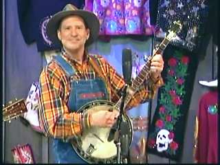 Marty said, "A Satisfied Mind. I'm Marty Stuart. This is The Fabulous Superlatives and you're watchin' The Marty Stuart Show. We're glad you could be with us. Superlatives?" The Superlatives said, "Oh yeah." Marty continued, "Well, just may as well get him out here because it don't get no finer than this. One of our all-time country music heroes. How 'bout a hand for the great Buck Trent. Come here ole Buck. Hey pal." Buck said, "Oh yeah." Marty said, "Welcome Buck, welcome Buck." Buck opened his jacket to reveal the words "Oh Yeah." He said, "That's it." Marty said, "That's it. 'Buckin' The Five'. " Buck performed "Buckin' The Five."