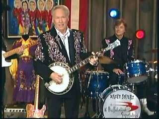 Eddie Stubbs started the show by introducing the guests. "From Nashville, Tennessee, the country music capital of the world and home of the air castle of the south, it's time for The Marty Stuart Show featuring Marty Stuart, the Rolls Royce of country singers Miss Connie Smith, the ole Tennessee Slicker Leroy Troy, along with all the Fabulous Superlatives: Cousin Kenny Vaughan, Handsome Harry Stinson, the Apostle Paul Martin, plus Gary Carter on the steel guitar, and today's special guest, Buck Trent. Join us now for 30 minutes of fun and great country music. I'm Eddie Stubbs. Now how about a Superlative welcome for our host, Mississippi's keeper of the flame for all things country. Here is Marty Stuart." Marty said, "All right. Thank you, Eddie." Marty and The Fabulous Superlatives performed "A Satisfied Mind."