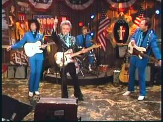 Eddie Stubbs started the show by introducing the guests. "From Nashville, Tennessee, the country music capital of the world and home of the air castle of the south, it's time for The Marty Stuart Show, featuring Marty Stuart, the Rolls Royce of country singers Miss Connie Smith, the ole Tennessee Slicker Leroy Troy, along with all the Fabulous Superlatives: Cousin Kenny Vaughan, Handsome Harry Stinson, the Apostle Paul Martin, plus Gary Carter on the steel guitar, and today, a very special command performance saluting the undisputed Queen of Country Music, Miss Kitty Wells, and her husband, the King of the Tennessee Mountains, Mr. Johnny Wright, along with our friends Chris Scruggs, Johnny Warren, Kent Blanton, and Lester Armistead. Join us now for 30 minutes of fun and great country music. I'm your announcer Eddie Stubbs. Now how 'bout a Superlative welcome for our host, the King of the Mississippi hillbillies himself. Here is Marty Stuart." Marty yelled, "Yeah." Marty and His Fabulous Superlatives performed "Stop The World (And Let Me Off)."