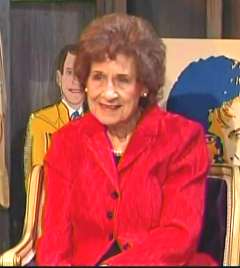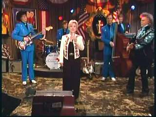 After a commercial break, Eddie Stubbs promoted the Superlatone Store. Eddie said, "And once again, here on our command performance, here's Marty Stuart." Marty said, "Thank you, Eddie Stubbs. And on behalf of all the folks on this show, you are our Queen and we love you very much." Kitty said, "Thank you." Marty continued, "Leroy, give our Queen some flowers. Leroy's gotcha some flowers. Everybody on this show loves you to pieces. That girl there may love ya a bit more than the rest of us." Kitty said, "Thank you." Marty said, "All right. Constance, we might oughta sing the national anthem, whataya think?" Connie said, "I think so." Marty said, "All right, gentlemen. 'It Wasn't God Who Made Honky Tonk Angels' for Miss Kitty." Kitty Wells joined in on the last chorus.