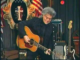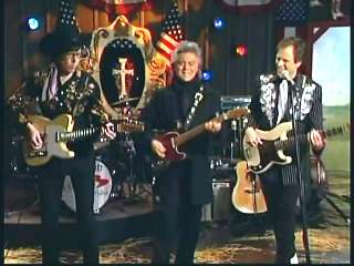 Marty said, "Thanks." Eddie said, "Fine job, Marty, right there with his D-45 Martin guitar and a medley of 'Soldier's Joy' and the 'Black Mountain Rag'. Marty, you're gettin' hot there up there where the money was a few times." Marty said, "I'm tellin' you boy. I'm tellin' you." Eddie promoted Marty's book of photographs, Country Music: The Masters. After a commercial break, Marty said, "That's the way it is, that's the way it is. Hey ladies and gentlemen. Welcome back to The Marty Stuart Show. First of all, write us at the Grand Ole Opry. We'd love to hear from ya. Or come see us at the Grand Ole Opry over there. Eddie Stubbs is always there. Connie's there from time to time. Me and The Superlatives are there. But if you're ever in Mississippi, here's what I might suggest to ya. Go to Jackson, Mississippi, the capital city. And I encourage you to visit the old State House Museum for a fine Southern experience. While you're there, go by the Governor's mansion. It's the second oldest continuously occupied residence of four United States Governors. Just knock on the door and tell the Gov that Marty and the Apostle sent ya. He'll be glad to see ya. He's a nice feller, don't you think?" Paul said, "Good man." Marty said, "Good man. Speaking of good men, here comes one right now. The most popular man in country music, the Sultan of Goodletsville, ladies and gentlemen. The ole Tennessee Slicker. How 'bout a hand for Leroy Troy. Leroy. Hey buddy. I wish you'd look over here. Fine, fine, fine, fine."