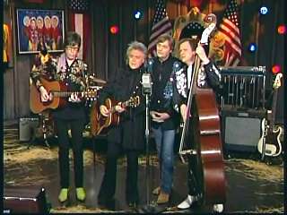 Marty said, "That's how it goes right there. That's how it goes right there. You did good, Patty. You did good." Eddie said, "One of the best loved hillbilly songs of all time right there. 'Why Baby Why' sung by Miss Patty Loveless." Eddie promoted the two DVD set of highlights from the first season of The Marty Stuart Show. After a commercial break, Marty said, "Welcome back everybody. How 'bout a hand for Miss Patty Loveless over here Superlatives. And all the young'uns. A true country music assistant. And how 'bout a hand for one of the greatest of all time. Comin' through this red door right now is the wonderful Miss Connie Smth. Come here Constance. Well. Do it baby." Connie performed "Paper Roses."