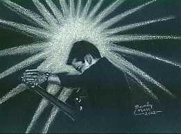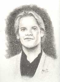 This drawing came to Bev in a dream. She woke up and knew she had to make it come to life. The words to "The Pilgrim" are in Marty's handwriting. This "life-size" drawing is actually bigger than life. Everyone who sees Beverly's work is amazed at her talent. Marty himself loves Beverly's work and her drawings hang proudly in his parents' home. |