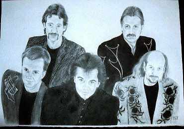 | In 2002, Beverly did these portraits of Marty, Gregg, Brad and Steve. Little did she know that when she was finished with these, that Gregg, Brad, and Steve would no longer be part of the Rock and Roll Cowboys. Bev, these drawings are phenomenal and are a lasting tribute to the band members we loved so much. |