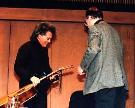 "All this and Marty Stuart still doesn't know where he fits in. And that doesn't bother him. Actually for most of my life, I've not fit in and that is just fine by me.' Well, I thought I had him pegged and then I opened the pages of Oxford American recently and there's Marty Stuart again as a photographer this time. Marty said it well when he suggested that he specializes in diversity. The term renaissance man' is overused but it seems to apply today. It gives me great pleasure and it brings honor to the Blair School of Music to welcome tonight an extraordinary man and an extraordinary musician, Marty Stuart."