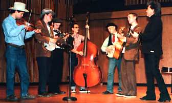 "This past summer, I was at the Uncle Dave Macon Days in Murfreesboro and I ran across some guys playing music just kinda on the side and they were burning it up. And people were crowded around. Film crews around. There were people with microphones. It looked like a Grateful Dead concert. And these guys are lovin' it. I understand they stopped traffic and had to call Nashville finest to break up a traffic jam on Second Avenue a couple of weeks ago. Before we go any further, I wanna show you what I'm talking about. About people who have it in their hearts. One of the most primitive, yet authentic and wonderful form of American music, American country music especially. Please make welcome my friends, The Old Crow Medicine Show."