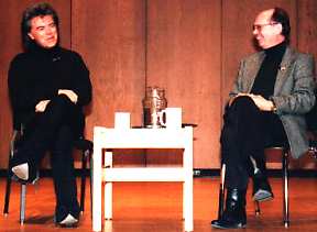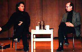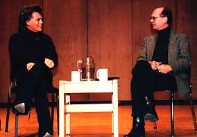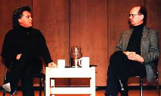 Now it was time for the "Conversation" part of the evening. Marty and Dale Cockrell, the moderator, moved their chairs front and center stage.