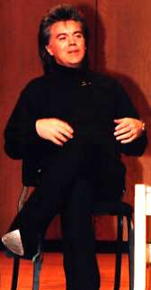 Moderator: Enough of the songwriting thing. I'm sure that many in the audience here know that it's a mystery of how you write the song. And how you come up with an album. I must admit, I listened to The Pilgrim and, by the way, if you haven't come in touch yet with The Pilgrim, you need to get it It's a great, great album. And it unlike like to me, so called country album that I've heard in a long time. I think I described it as "richly raw" or some fancy word. It's got 20 songs on it and sometimes they go together and sometimes they come back at you. Go out and get it. Show MCA that art sells. (Heavy applause.) How do you go about putting that together? How do you know what songs to go through?