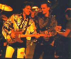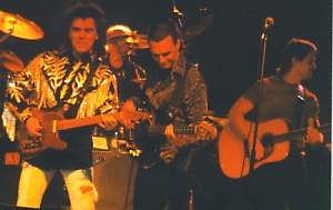 It was a night for the old songs, too. They started with "Western Girls," then did "Doin' My Time," "The Whiskey Ain't Workin'," "Blue Train," "Tempted," "Oh What A Silent Night," "Shake Your Hips," "Hobo's Prayer," "Burn Me Down," "Southern Accent," "Hey Baby," "Soldier's Joy," "Long Black Veil," "Now That's Country," and "Hillbilly Rock"; and for the encore they did "As Long As I Have Jesus (I Can Face Tomorrow)." Marty and the Cowboys were all smiling and laughing and just having a great time, and they had a really good crowd. When Marty was introducing "Hobo's Prayer," he said "I wanted to be a hobo when I grew up." A girl shouted something, and he said "You did too, baby?" She shouted back "Uh-huh," and Marty said "Well, it's too bad, we could have hobo'd together. I could have been Mr. Hobo and you could have been Mama Hobo and we could have played train...choo, choo!" The whole place went crazy, and he laughed and said "Nah, nah, nah, nah"! Then he said his Mama told him he couldn't be a hobo, so he became a musician instead, which was the next best thing.