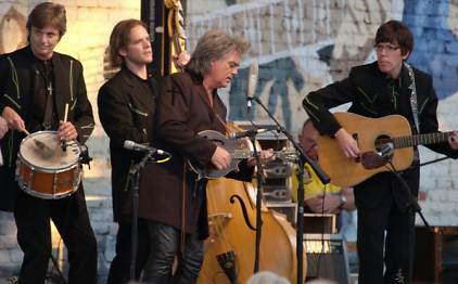 Said he and Connie would show their southern hospitality when he moved in and invite him over for cheese and iced tea!! Then went on to say the best way he knew to make him welcome was with song and what better way then to sing a Bee Gee song bluegrass......The song is "Disco Grass." With Brian singing lead they performed "Staying Alive," Bluegrass style -- the high notes were wild!!! A very entertaining set with Marty leaving saying "come to the stage up the street and see the rest of the show plugged in"!!! Second show was Hillbilly Rock!!! Sung a bunch of songs I had never heard before, possibly new ones! Did one bluesy song with Harry singing lead with Marty telling a made-up story about Handsome's women throwing him out of the "Trailer Park"!!! then Harry sings this amazing blues song!! Kenny sang his rock song showing off his guitar-playing abilities!!
