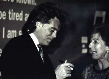 Sherry and Mario arrived around 6 P.M. or so, and the four of us "Marty fans" talked while we waited. The hors d'oeuvres looked tempting, but I really wasn't hungry, so sat that part out! Soon I spotted Marty's assistant, Maria-Elena, so I knew Marty had to be close by! I was right, as you could easily tell he'd arrived when flash bulbs started popping, and you could here whispers announcing his arrival! He looked dashingly handsome in his black suit that hilighted his tan perfectly. His black patent leather boots were so shiny you could see your reflection in them!