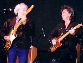 The show went in typical Barnyard format we've all heard about, with Marty's set first. It was a great show of course. Some songs were different from what I had heard before. He did not do "If There Aint....." but Merle did come out at one point to sing "Farmer's Blues" with him. This crowd wasn't rowdy like my first "Marty alone" show that I experienced in Paducah. Like, only one person in the crowd during his set yelled out something smart to him (a squeaky female voice, like "take off" whatever..") and Marty just gave it back and said "ok ok ok" with squinty eyes and this squeaky little voice too. I thought that was pretty funny. I always am amazed at his skill to work a crowd even if they call out something obnoxious. Anyway, Marty finished up with a gospel medley and "Hillbilly Rock." I forget what he encored to. It lasted for about an hour.