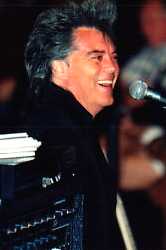 "Do you like the idea of having a concert?" Fan club members applaud. "Do you? You all seen me and heard my jokes for 12, 15, 10 years years some of you. But this is different." Someone always has to yell out how much they love Marty. "Thank you. Thank you. I keep lovin' you back. I love it Thank you for standing by me. We've got new songs we're gonna play tonight, two or three new songs. I'm gonna host the Grand Ole Opry TV portion Saturday night. We'll play a couple more there. New band, new record deal." Someone asked "When are you going into the studio?" Marty replies, "Probably about August. There's one song called 'I Surrender.' I'm gonna sing it for you tonight." Marty jokingly adds, "It makes me feel sexy. My breasteses." Everybody roars. "Saw Dolly Parton out in front of this building. Look at them. What's she got?"