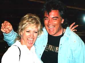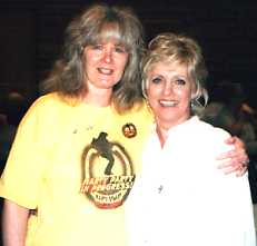Marty's mom, Hilda, was making her way through the crowd, talking with everyone. She came over and asked if we'd gotten another pet (we haven't). She talked about their dog Buddy (a gift from Marty) and their three cats (one of which had spent the evening on Marty's lap when he'd come by for a visit). We spotted Connie coming our way. Connie's fans surrounded her and she gladly signed autographs and posed for pictures. Some fans came bearing gifts as well. Connie is such a sweetheart. Mario insisted that I go talk with Connie. I really think he just wanted to get up close and personal to her -- as any normal red-blooded man would. She gave us both a hug and posed for a picture with me. Dumb me completely forgot to wish her luck in the Golden Voice Awards, which were to be presented the next day on the General Jackson. She didn't need my luck because she WON the Female Golden Voice Award for 2001.