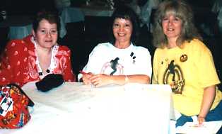 Outside the Rotunda are steps leading back down to the Conservatory. They were serving coffee, ice tea or water and a couple of different desserts. The line to see Marty had formed, although he was still touring the Hall of Fame. We found a table and sat down to eat. Mary decided to "doodle" on the paper table cloth. Mario wanted to take a picture of Debby, Mary and me. I enjoyed talking with Tammy Lienhart and Melanie Renfro (loved the jacket, Mel). Said "hi" to Gregg Stocki. Jodee had mingled through the crowd and I know she talked with every person there. We did see a lot of Travis Tritt's fan club members who were also invited to the fan club party. I did not see Steve or Brad, although Evie had her picture taken with Steve.
