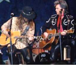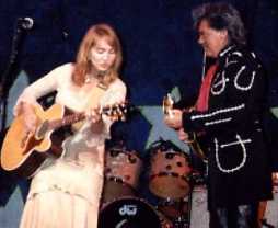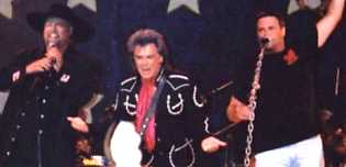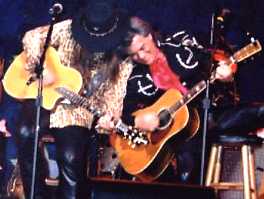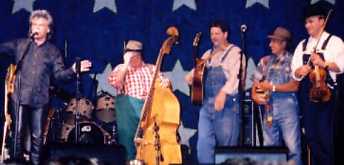 It's apparent that the Webster people have no clue. Have they not heard of Nashville, Tennessee? Or of Fan Fair? Or Marty Stuart for goodness sake! Anybody that's anybody knows June is much more than the sixth month and thirty days long! June is the heavenly time for all country music folks! It's the time we yearn for all year, and if ya' ain't country ... well ... that is an entirely different handicap, and I'll not go into that now. We had a great time on our little adventure. On Friday, the 7th, we rolled out of bed and crawled to the car at 4 a.m. to head east. We arrived at our daughter's in Arkansas that morning and breakfast was ready. We left there Sunday morning and headed for our son's in Tennessee. It's a nine hour drive, and we arrived there to the aroma of grilling hamburgers. Now don't we know how to time things? (smile) We arrived at the Ryman at six, so we had an hour to kill, but we were up near the door, so I could handle the wait. We hadn't been there long before Judy arrived. We chatted a while, both excited about seeing Marty again. Then Mike got my attention, and pointed out a long limo that was creeping by ever so slowly. We were wondering who might be in it as we watched it disappear around the corner. I said something about Serena was dropping Bev off, and Mike said that maybe it was Bev in the limo. We were still laughing about that when there was a tap on my shoulder. I turned, and there stood Bev! I had to ask her if she had just arrived in that limo! She said no, but I still wonder. (smile)