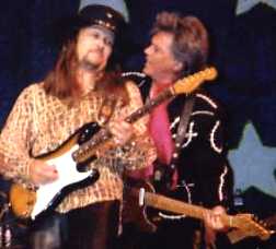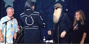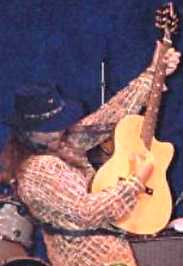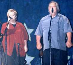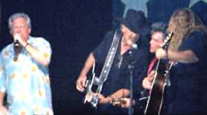 How wonderful it was when the doors finally opened! I mean wonderful in many perspectives. The first was just the sheer joy of that cool AC air washing out over our hot and sweaty bodies. We inched our way in slowly as everyone received their tickets for the big show. But we were finally in, and the fan club party for 2002 had begun! Jodee stepped up to the microphone and the event officially got underway. She gave us an update on the status of the fan club members and passed out prizes to some. Then Marty appeared and everyone's faces lit up! You could have turned off the lights and there would have been a glow in that balcony! I won't go into all that happened at the Late Nite Jam, except to say: