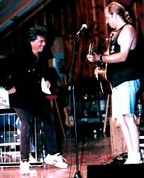 Marty then introduced one of his dearest friends -- LeRoy Troy -- a banjo picker from Goodlettsville, Tennessee. Marty had LeRoy on his bluegrass show in June 1994 so I was familiar with LeRoy. You get back to some great pickin' and singin' (and humor) with LeRoy. Marty called him "the real stuff." He said LeRoy was a "star," and said he was "my hero." He said LeRoy represented "real, honest-to-God pure hillbilly music." Marty sat himself on the stage, had his acoustic guitar, and just watched and listened and played some. LeRoy played "Mountain Dew," "Get My Skillet Good and Greasy" and "Jesse James." LeRoy has a way of turning his banjo over and around while playing. He is really phenomenal.