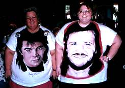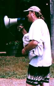 Mike then started lining up folks for the autograph line. He said it was his 10th year with Marty and it keeps getting better. We got the best fans in the world. You all keep coming out, okay?" While Marty was signing autographs and posing for pictures, Mike got in the dunk tank again this year to raise money for the fan club. Here he is trying to drum up some business before he gets in the tank. Come on Mike, do you REALLY need that bullhorn? Enjoy these other photos from the fan club party! If you've enjoyed what you've read and seen here, we hope you will be part of the fun in June 2000. Don't forget to check out the Marty & Friends page for photos of the fans with Marty. |