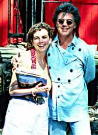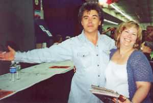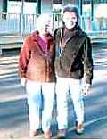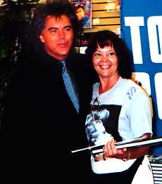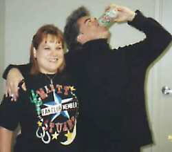 | Lisa Sammons smiles while Marty's quenching his thirst! Okay, he's ready to pose. | |