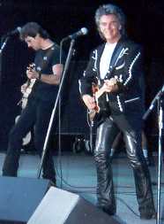 What can I say......... the angels smiled down on us and brought us good weather after all that rain in the A.M. Marty was REALLY HOT! One of the women yelled for him to take off his jacket and he said "You take off your dress!" "I promised Connie I wouldn't show my butt anymore." Then he just laughed and laughed. He was in TOP FORM. Loved his tight leather pants and that leg action, Wow. As LaDonna said, there were alot of fan club members there and it was lots of fun talking to everyone. I saw Evie and Judy during the second show and they had row #1 seats right by the walkway. They should have some great pictures.