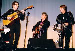 The drive was uneventful (didn't get lost once!!) and we had no trouble finding the Opera House, a lovely old building in a typical small southern town. We found a place to park right out front and just around the corner from Marty's bus. When we went in, we met Diane and her husband, Jim, who were already waiting. We talked for a few minutes and I picked up my tickets for the second show. Everyone who works at the Opera House is very friendly and they were all excited about having Marty there. As we stood in the lobby talking, who should walk in but Marty himself, smiling and shaking hands! He looked like he'd just rolled out of bed, all sleepy-eyed, with his hair sticking out all over his head (even more than usual!!) and needing to shave, but, man, he sure looked GOOD!!! One of the ladies said "You look like you need a nap!" and Marty replied "I've been asleep for two days! I came home, got Connie off to Norway and I went to bed!"