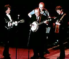 He mentioned that he's been performing for 25 years and he's loved every minute of it and every mile of it. He said he had his first album coming out in three years, The Pilgrim, and performed the first single off it, "Red, Red Wine and Cheatin' Songs." Marty then performed "Hobo's Prayer." He said the one thing he learned about hobos was they all were hurtin' inside when he thought all they did was get drunk and ride trains. Marty invited everyone to the groundbreaking ceremony for the Country Music Hall of Fame that was going to be taking place on Thursday. The Hall of Fame and its inductees are so dear to Marty. He said, "They gave all of us a road to ride on, they gave all of us a map to travel on, they gave all of us a life to play country music." Marty can bring out the legends and he brought out one of the very best. Country Music Hall of Famer, Earl Scruggs, joined Marty on the song "Mr. John Henry, The Steel Driving Man." Earl's son, Gary, and Brad Davis joined Marty and Earl on "Lonesome Reuben." Such wonderful "pickin' on those songs.