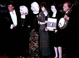 Louise was overwhelmed with emotion. Marty, naturally, could not say enough good things about Louise. He talked about the corporate sponsors and the deals Louise was able to cut for Flatt & Scruggs. Marty read the inscription on the award, then posed for a few photos. It was then time to end the show with Marty's signature "Hillbilly Rock." After the song, Marty came down the steps from the stage and shook hands with some of the crowd. I was able to meet Kathy Patterson, Penny Risk, Cathy Morrison, and Beverly Kerr as well as revisit with Sheila Walters, Cindy Allred, and Ellie Viscione. Also spotted Pat Johnson and Glenda Rummell. The Marty Maniacs were out in force! Enjoy these other photos from the show. |