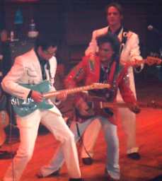 Jerry Lee Lewis performed last. He did most of his hits and can still really pound the piano. Marty stayed out onstage the entire time he performed, playing as a member of Jerry Lee's band. He was having a blast! (He'd changed out of the pink jacket into the polka dot shirt he's had for years.) I couldn't understand anything Jerry Lee said when he was talking -- his voice sounded weak -- but when he sings, he sounds like he always has. He was singing his last song, "Great Balls of Fire," I think, and he just stopped playing the piano, got up, waved to the audience and walked off. Marty tried to get him to come back and do another song, but Jerry Lee just shook his hands at Marty, gave him a hug, waved at the audience again and was gone.