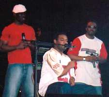 Marty introduced Naturally 7, a very talented group who, with no instruments at all, could make the sounds of all the instruments. Bass, drums, you name it, they could play it, but all through their voices and throats. Marty and Connie both sat on the side stage and really enjoyed it. The guy who imitates drums sat down and gave us a show, throwing the (invisible) drum sticks in the air and hitting the cymbals. Wow! Marty brought out his mandolin and asked if they could use a "white boy from Mississippi". They all played "Amazing Grace".