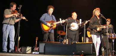 Then we heard the familiar chords of "The Ballad of Jed Clampett." Marty made the audience stand up and sing the words. How could one not know the words to that song? I loved watching The Beverly Hillbillies. Stuart Duncan got the ole "Orange Blossom Special" kicked off. Marty got a charge out of watching Earl's fingers run up and down the fret of the banjo.