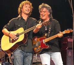 Dierks performed his hit "How Am I Doin'?" and then performed the next single off his new album, "Come A Little Closer." Marty grabbed his mandolin. Dierks says, "Don't you have enough money to buy a new mandolin?" Marty had to tell the story of how Johnny Cash took the mandolin and inscribed "JRC" on it so that Marty would never forget the Lord. Marty said he told him, "I can remember the Lord without you messing up my mandolin." He asked Dierks to sign the mandolin and Dierks declined. He accompanied Dierks on Dierks' latest hit "Lot of Leaving Left To Do." Dierks mentioned it was #2 on the charts. Marty asked, "Who's keeping you out of #1?" Dierks answered, "Keith Urban." The crowd went wild. Marty, in his best Aussie accent says, "Dierks, I'm so sorry ...."