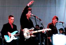 Marty and the Rock and Roll Cowboys performed on the MCA Show at Fan Fair. Also on the bill were Rebecca Lynn Howard, Gary Allan, Chely Wright, Lee Ann Womack and Trisha Yearwood. During the pre-show, they played "Red, Red Wine and Cheatin' Songs." At Fan Fair, they run two stages. While an act is performing on one stage, the other one is being set up for the following act. It's always fun trying to guess which stage Marty will appear on. Some guy there was telling everyone the wrong stage, so we Marty fans had to pick up and move to the other side.