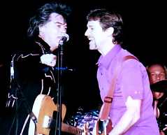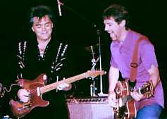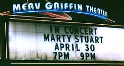 They opened with "High On A Mountain Top" and went into "Doin' My Time." Marty forgot some of the words. He then asked how many fan club members were there. There were quite a few and he asked us to give him a "Weeeeellllllllllllllll" and we sang along to "The Whiskey Ain't Workin'." He talked about Travis and their being dubbed "modern country music outlaws" like Waylon and Willie. He said it just meant they had good publicists. Marty told the story (again) of watching the Macy's Thanksgiving Day Parade and said he saw the Bullwinkle balloon which made him think of Travis. So he called ole Travis up and asked what he was doing and Travis said "watching Barney and changing diapers."