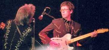 He then introduced the band. Then he did a little campaigning for Kenny Vaughan. He told that Kenny wanted to be the next Governor of Oklahoma. He has my vote. Marty had him play a few guitar licks if we would vote for him. It was really funny and the crowd began to wake up. They sang "Luther/Kenny Played the Boogie Woogie". After that came "Tempted" and Kenny sang "Country Music's Got a Hold on Me". The crowd really liked this. Marty then paid tribute to Waylon by singing, "Tow the Mark and Walk the Line." He then went into "Farmer's Blues." Up next came Brian singing "Everybody's Tryin' to be My Baby."